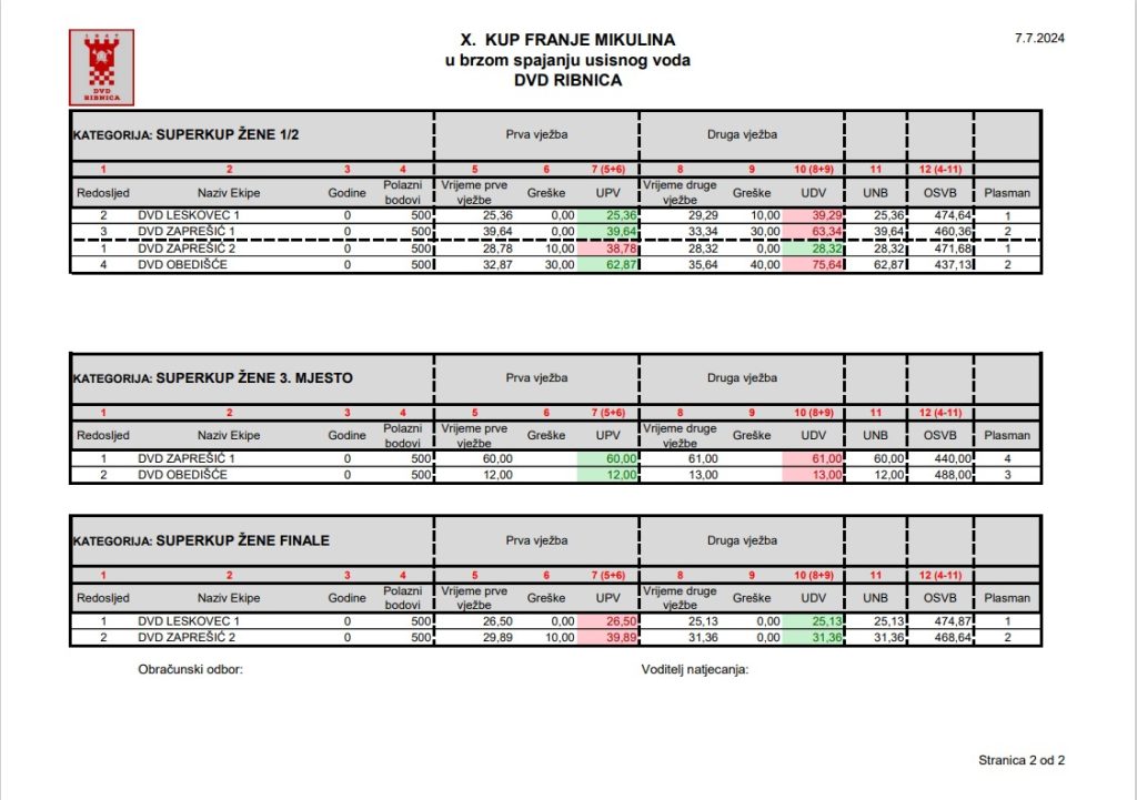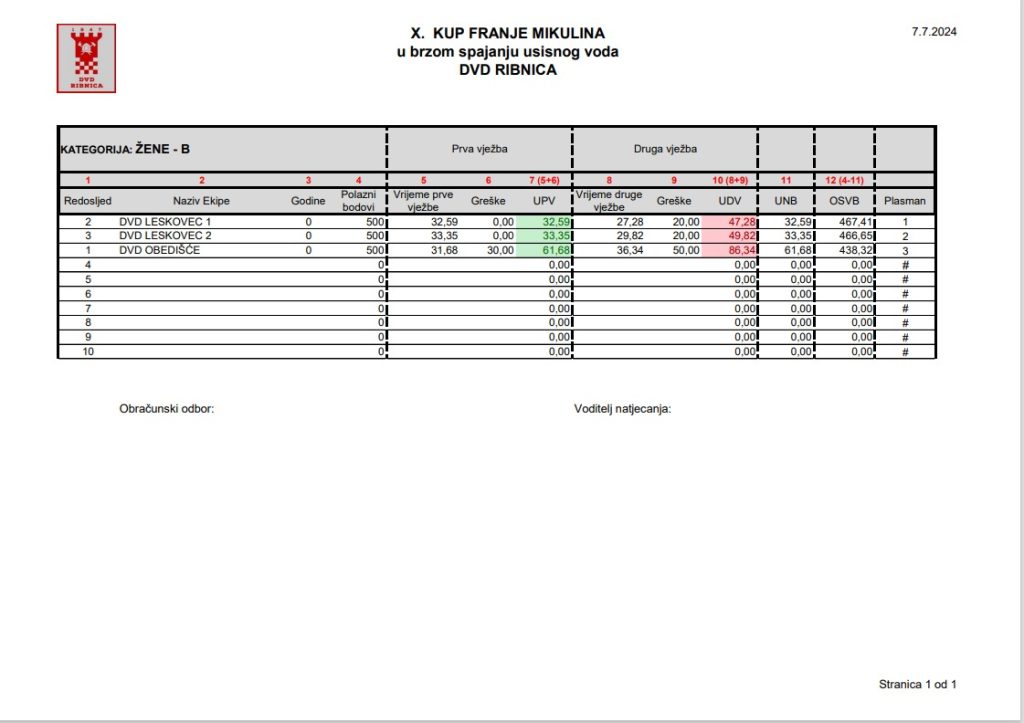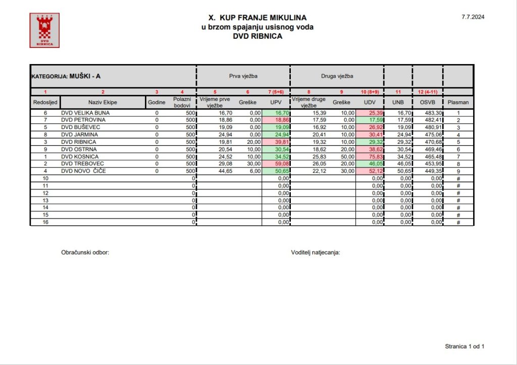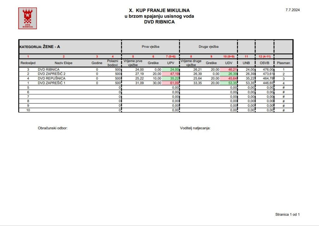 Ponosni smo na to što su u A kategorijama pobjedu odnijela naša društva; DVD Velika Buna u muškoj, a DVD Ribnica u ženskoj konkurenciji. Ostale rezultate možete pogledati na kraju objave.